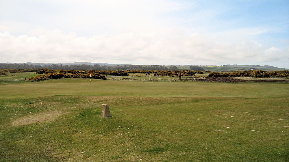 It is located on the line of the first St. Andrews' steeple that you see viewed right-to-left from this fairway.