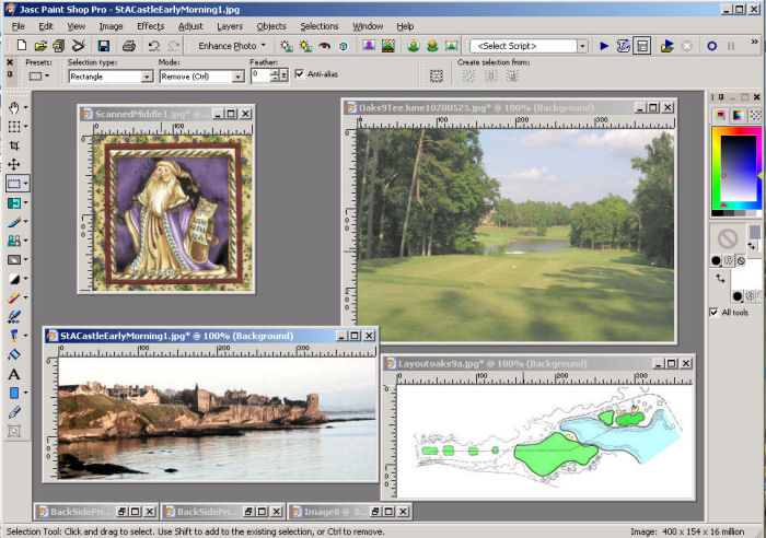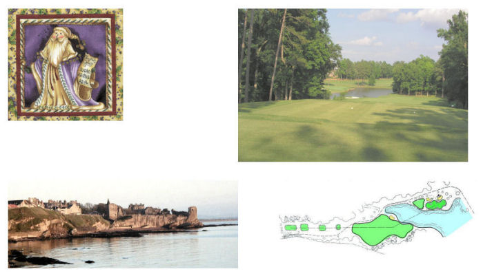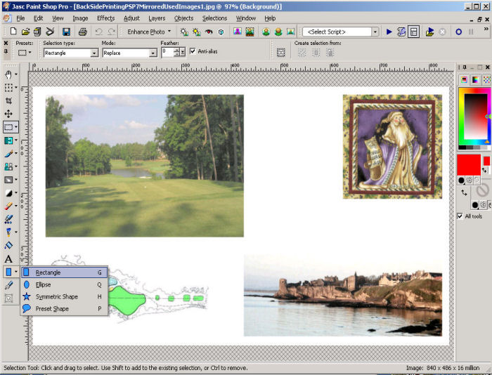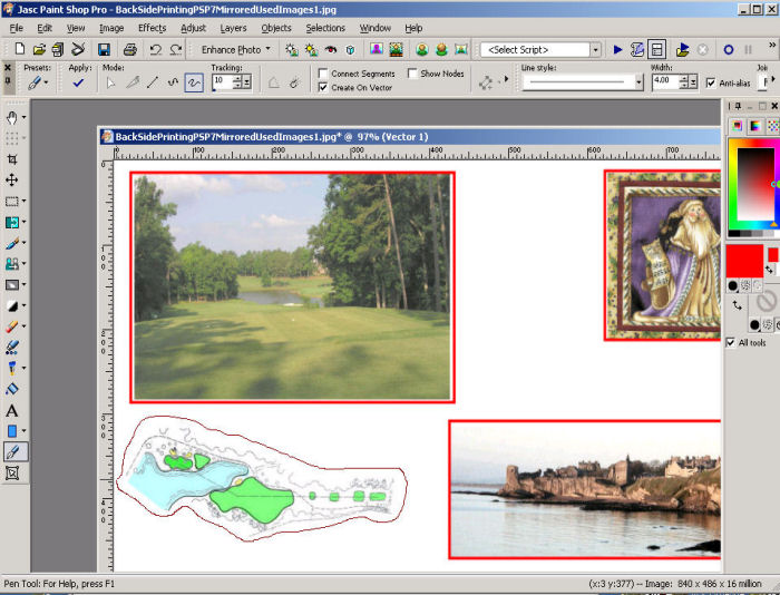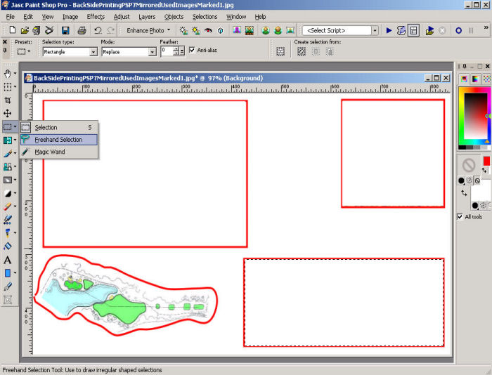 Preparing the Backside-Text Area... This shows the three parts of the image where we could use the rectangle tool. The fourth area (the golf hole layout), in this example, we prefer to use something other than a rectangle!