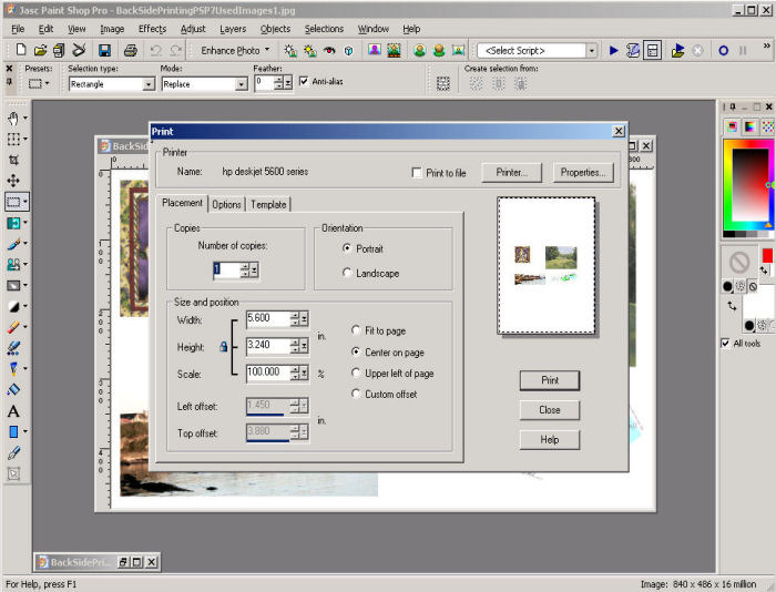 After the above, your original information will have written-on data on the backside. You could, for example, now cut the printed media into "cards" (such as business cards) that have printed data on both sides. Or, use the above technique to create your own greeting cards. The following set of images show the steps in more detail for those who are interested in the PaintShop Pro panels/options used. A Blank Image This will hold the information on the Front Side of the printed media.