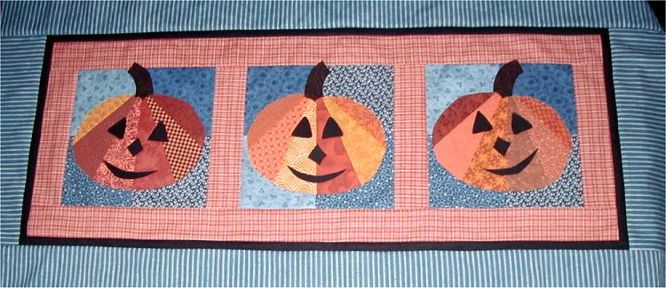Next, I show a picture of the completed small quilt top that contains the above-shown block. The quilt is about 40 inches wide. The picture was taken at my Olympus camera's HQ (1.3 megapixel) detail and was 203 KB size on the computer hard disk. I, then, resized the picture to be as below, at a width of 750 pixels.