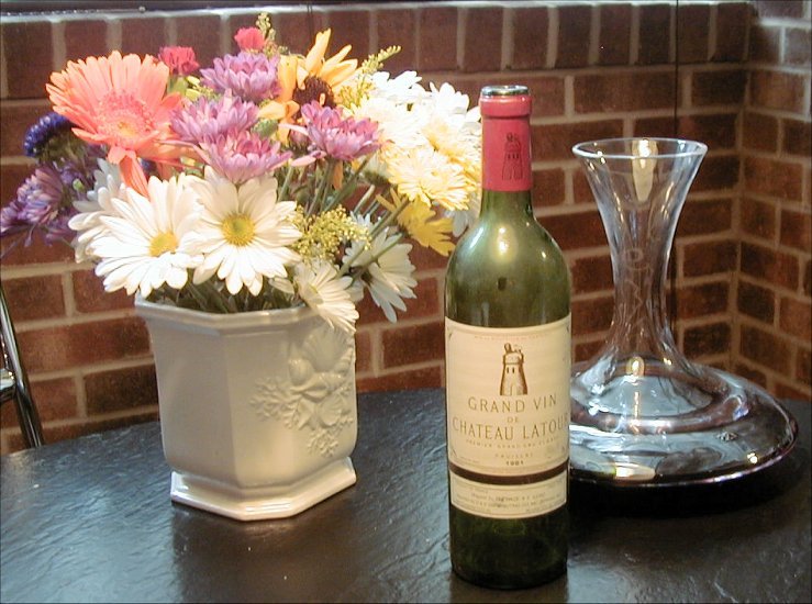 The Bordeaux was a bottle of my favorite wine: Ch. Latour. Excellent! It had been in the cellar without being moved/touched since 1986 (1981 vintage). As seen, below, the cork is quite different from the 1998 Pola. However, the cork had "done its job" well and the wine tasted wonderfully.