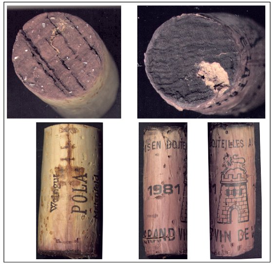 The first-shown (below, right) cork is from a bottle of a French wine (type: Bordeaux). The bottle was from the wine year: 1981.