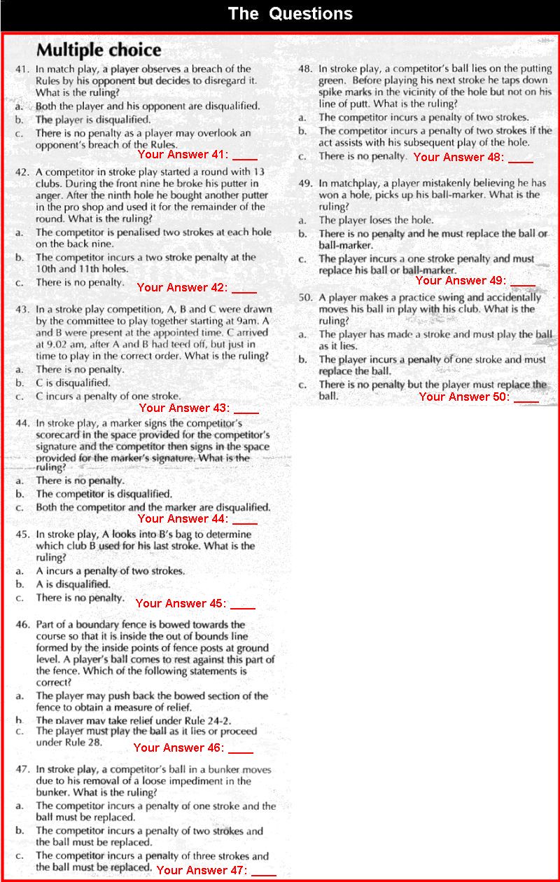 What is intended for this example is that you save the above image into your system (PC, etc.) and, then, open that saved image with your image-processing routine -- and modify the image there (by placing your answer to the questions in the indicated part of the image). If you do not know any of the answers: OK! Just guess -- or randomly select an answer. This exercise is not aimed at being a golf rule quiz... although it happens to be that type of question set!