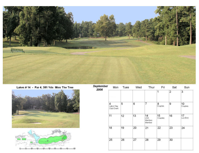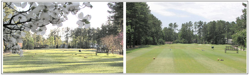 The Raleigh example shows the same golf hole (175 yard Par 3) at two different times of year: Spring and Summer. The advantage of the Spring: Colorful fruit trees surround the player - although the grass is still dormant/brown and the hardwood trees are not yet fully leaved. The advantage of the summer: Grass is grean/lush and the hardwood trees are full/ready for Fall.