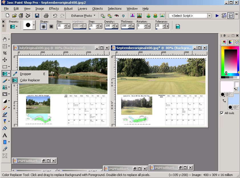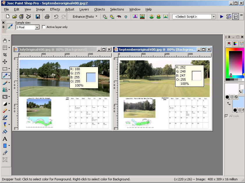 In the December 2005 newsletter I show an example of a calendar page. Within the calendar page are two pictures taken from a 5-megapixel digital camera.