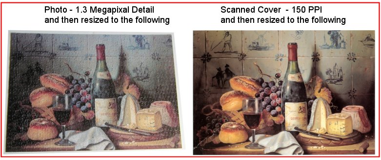 The scanned puzzle cover turned out terrific -- it was scanned at 150 PPI (pixels per inch) and the image was resized to 868 Pixels wide and 595 pixels high as shown below. The reason for the dimensions is, keeping an image less than 600 pixels high and around 900 pixels wide allows for many PC screens and Web browsers to display the image at one time on the PC display. If either dimension of the displayed image is larger than 600x900 I resize the image (using PaintShop Pro) to fit within my desired height/width.