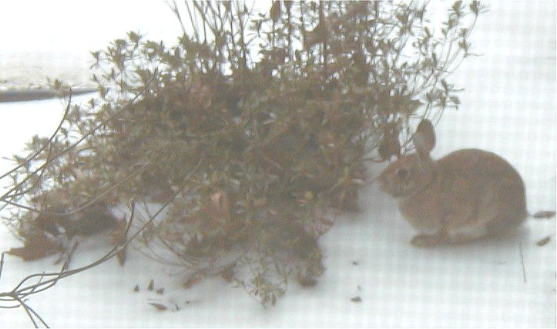 Outside the window of the orchid area, a bystander was enjoying things earlier this morning. The photo was taken through a screened window.