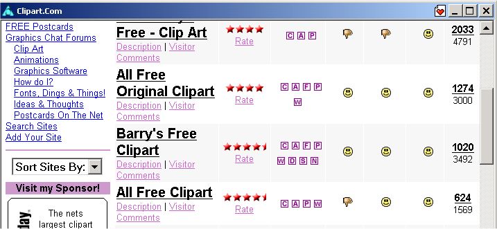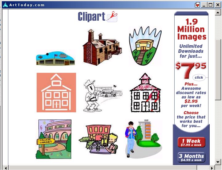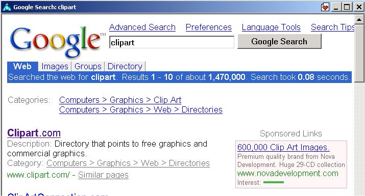 I had another option. A few years ago I purchased a version of IMSI's "Master Clips". It included 303,000 clip art items.