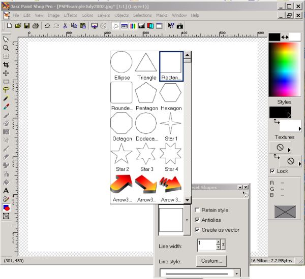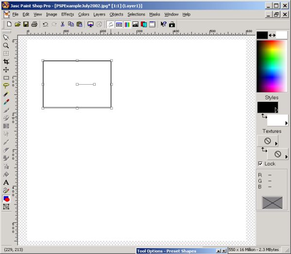PaintShop Pro provides some preset shapes and I select the "rectangular box" shape for this example.