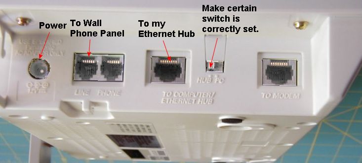 Note: I adjust the "Hub" and "PC" switch to be Hub since I connect the Networking Home Gateway to my Ethernet Hub.