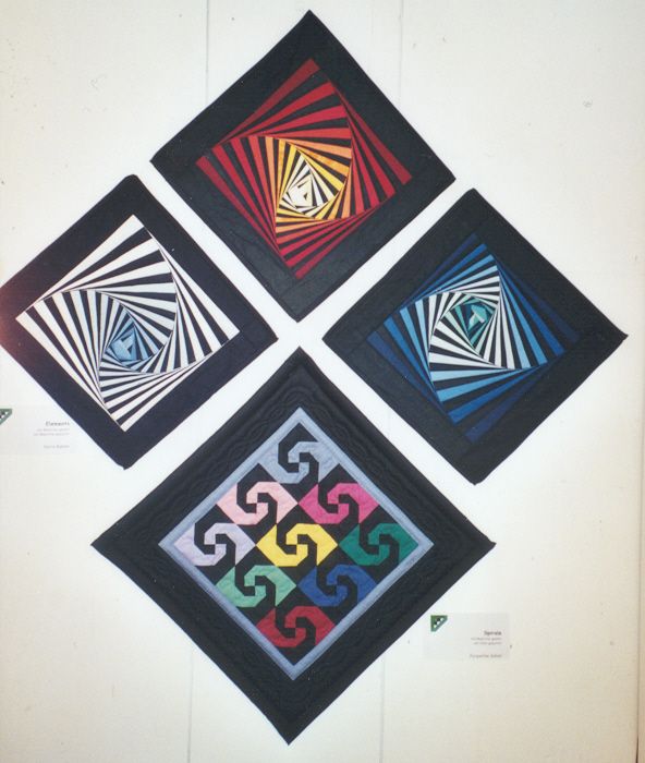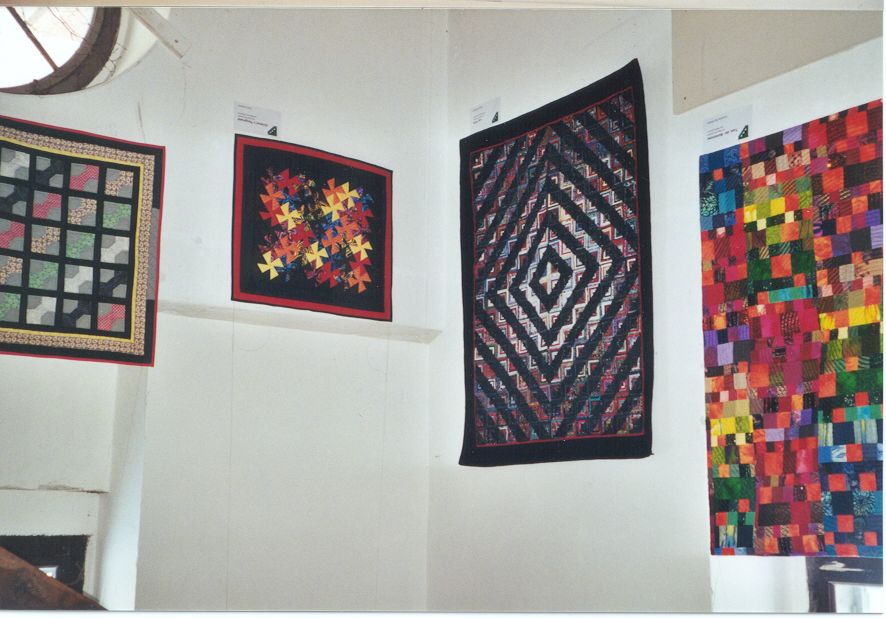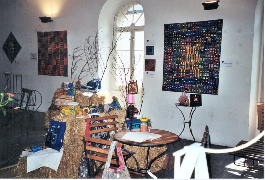 Often, groups of quilters show their work in an exhibition/show. The following three photos are from a May, 2002 quilt show in Switzerland. The images shown are scanned images of film photographs instead of from digital cameras as are the other photos shown in this Web page.