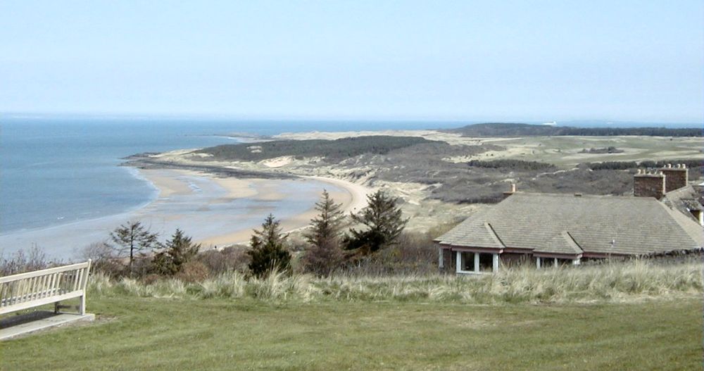 The course, this month, is Gullane (Scotland). The course is 30 miles or so from Edinburgh -- the hills of Edinburgh are across the bay shown in this picture.