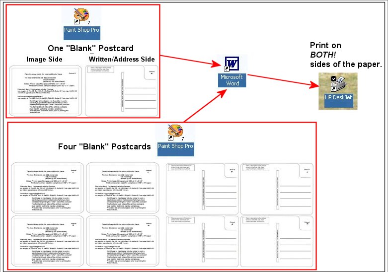 Again, moved the four-postcard sample images into Microsoft Word and print in such a way that the two sides of the paper match up.