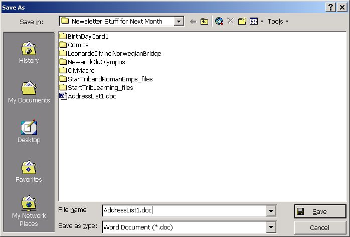 When ready to, we save the address list with some name -- into some Windows folder that we can later-on open (again) with Microsoft Word.