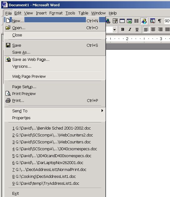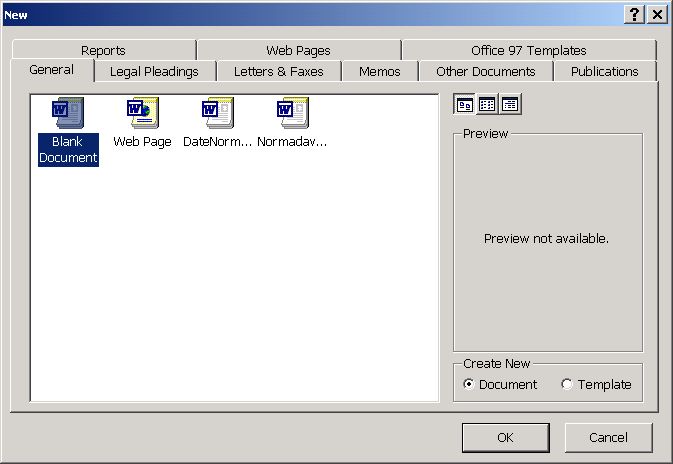 Assuming that this is the first time we have entered into Word this set of address list information, we start with a Blank Document.