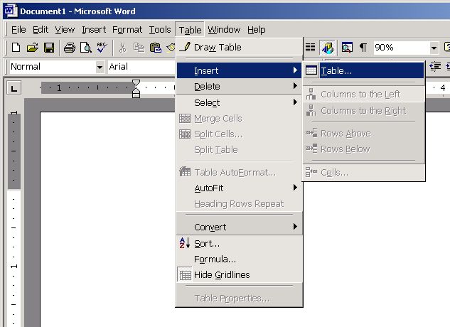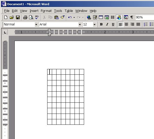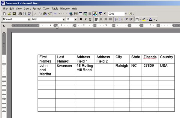 Once we have the new document open, we begin by creating a Word table. We will place the address list information into that table.
