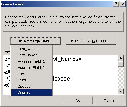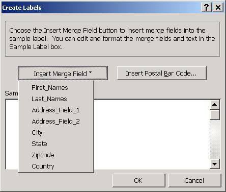 Good luck with your label printing and use of Microsoft Word's address label support.