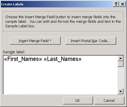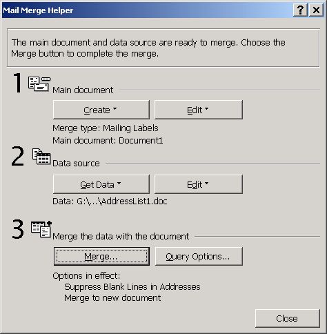 Within the Mail Merge Helper panel we Create Mailing Labels.