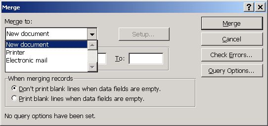 We merge it into a New document in this example. We could choose to go directly to the printer.
