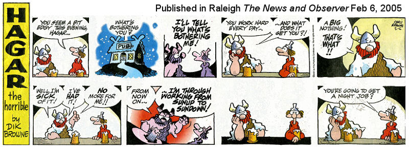 Let's begin, as usual, the newsletter with a couple of scanned (I use an Epson Perfection 4180 Photo scanner) comics. (I show these as a sample of scanning material and using the results of the scanning process. The scanned image has been adjusted with PaintShop Pro. For example, the scanned material ends up in the computer with a "grayness" the color of the newspaper and PaintShop Pro is used to "swap" that color with "white". Also, writing on a scanned image is shown. Your home computer system's image-processing application may be used to do similar functions).