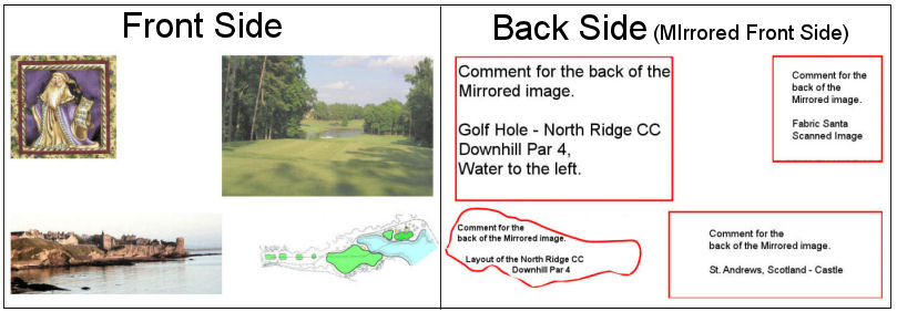 After the above, your original information will have written-on data on the backside. You could, for example, now cut the printed media into "cards" (such as business cards) that have printed data on both sides. Or, use the above technique to create your own greeting cards. To see the steps taken in more detail, click on: Further Discussion of Backside Printing