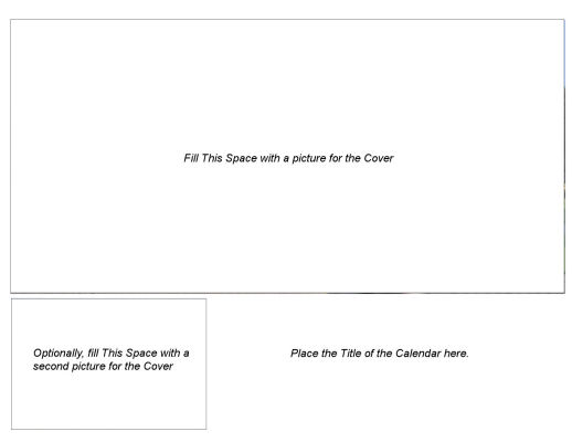 Calendar "Template"I put together a "template" for a calendar for the upcoming year. It ended up to be something that I can use for upcoming years, as well. If you are interested in the following, click on the image and it will be re-shown in larger size. Then, you can save that image and modify it for your own purposes. The reason for the size of the shown image (larger than the one that you click on, below) is to allow the template to hold a larger-sized image on your calendar page. When you modify/use the template in your image-processing application (I use PainShop Pro) you will see the value of having the larger-sized template. Let me know if you have any problems if you choose to use the following templates. Cover Template (Clicking on the following will bring forward a larger-sized image of the following. Save the shown-image and modify it, using your image-processing application (for example, PaintShop Pro) to fit your purposes.