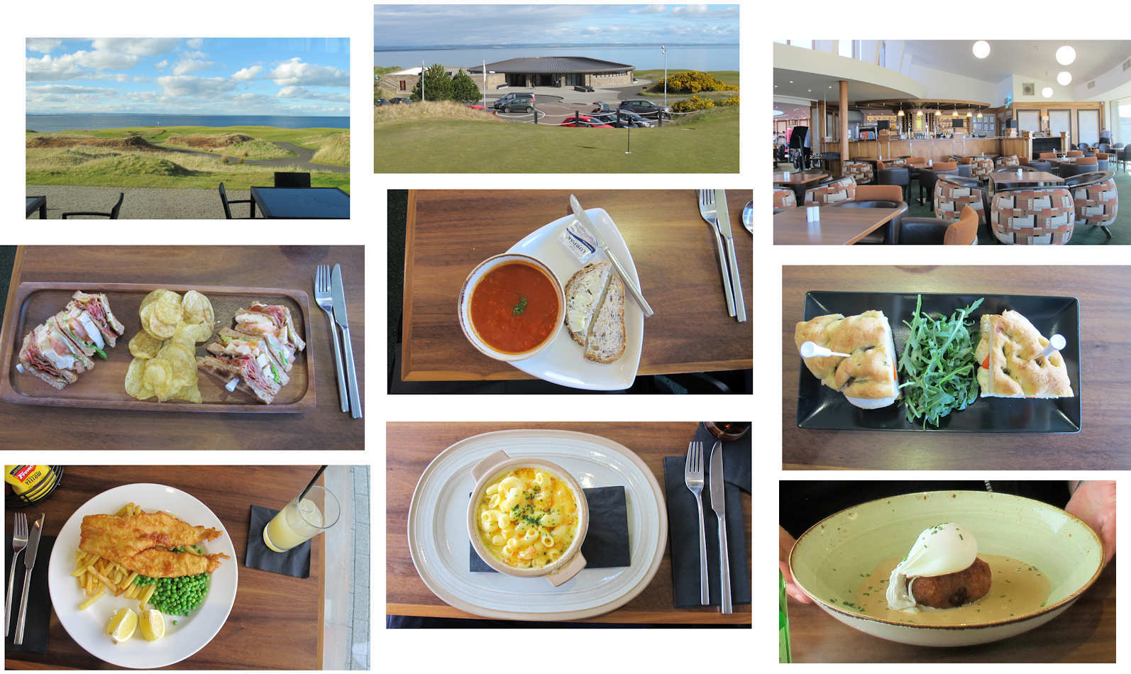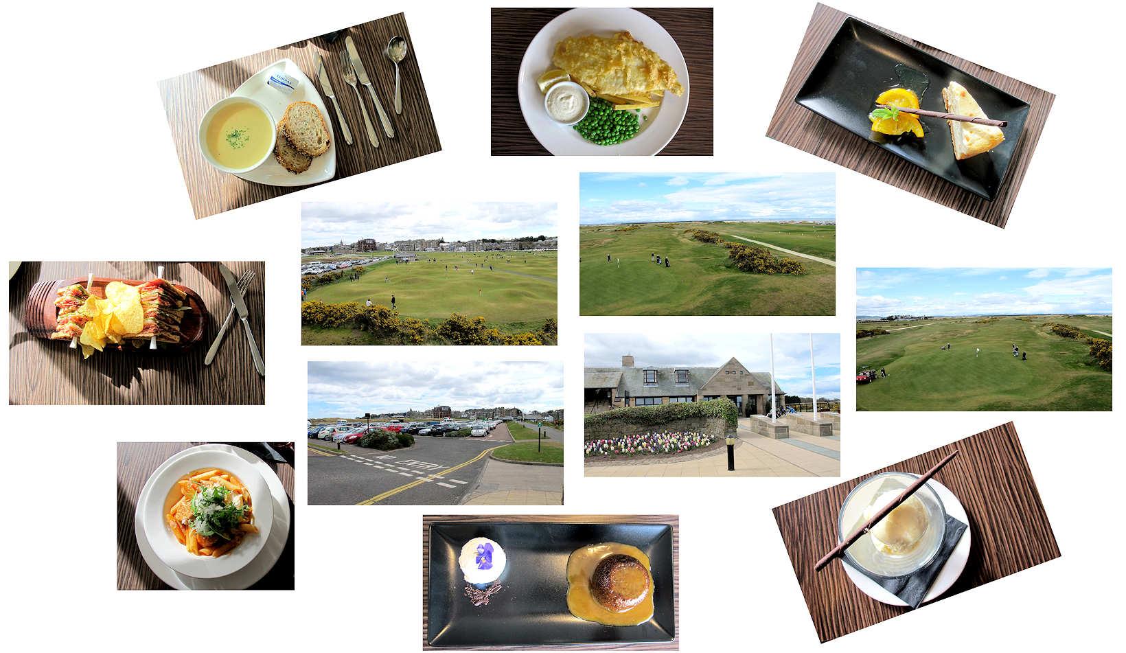 Before or after the play: The Visitor Clubhouse restaurant (and, as well, the locker rooms) are used by most players who play the New Course and the Jubilee Course or, perhaps, are giving the Ladies Putting Course (located next to the Visitor Clubhouse) a try. The Eden Course and its clubhouse is about 1/2-mile across the following-shown area (a two minute car drive). The Castle course is about 3-miles from this spot (a five-to-ten minute car drive) outside of the town of St. Andrews.