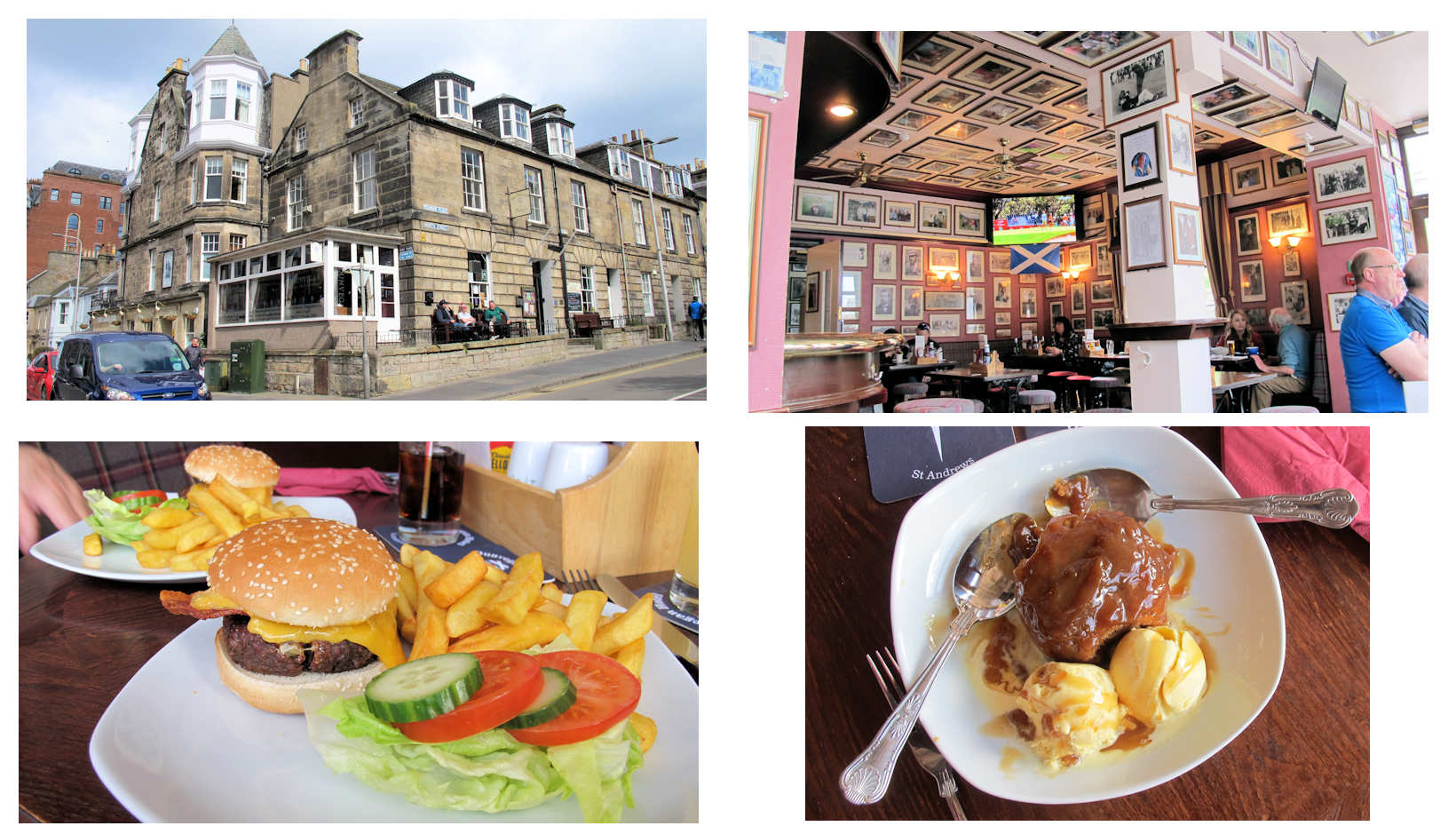 According to Sonja's golf pro/teacher in St. Andrews, the Jigger Inn has the best hamburger in St. Andrews. David agrees - The Jigger Inn hamburger is terrific and is a "destination meal" now. Their entire menu is fine.