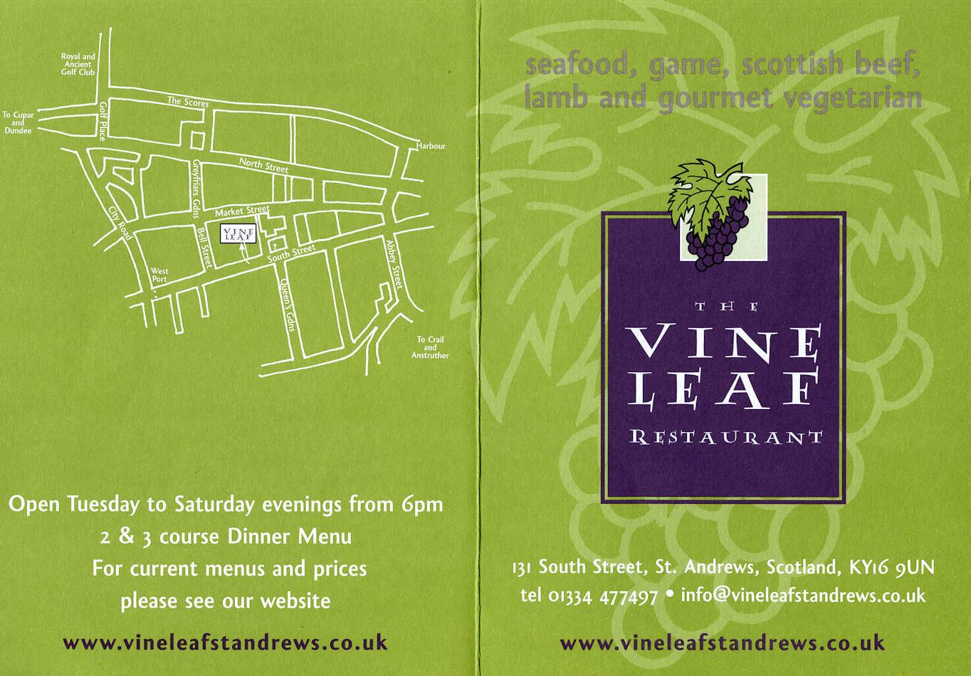In business for 30+ years, the restaurant is a place to go for "dining". It is not a pub. I suspect that multiple generations of St. Andrews University families have viewed the Vine Leaf as "their" restaurant.