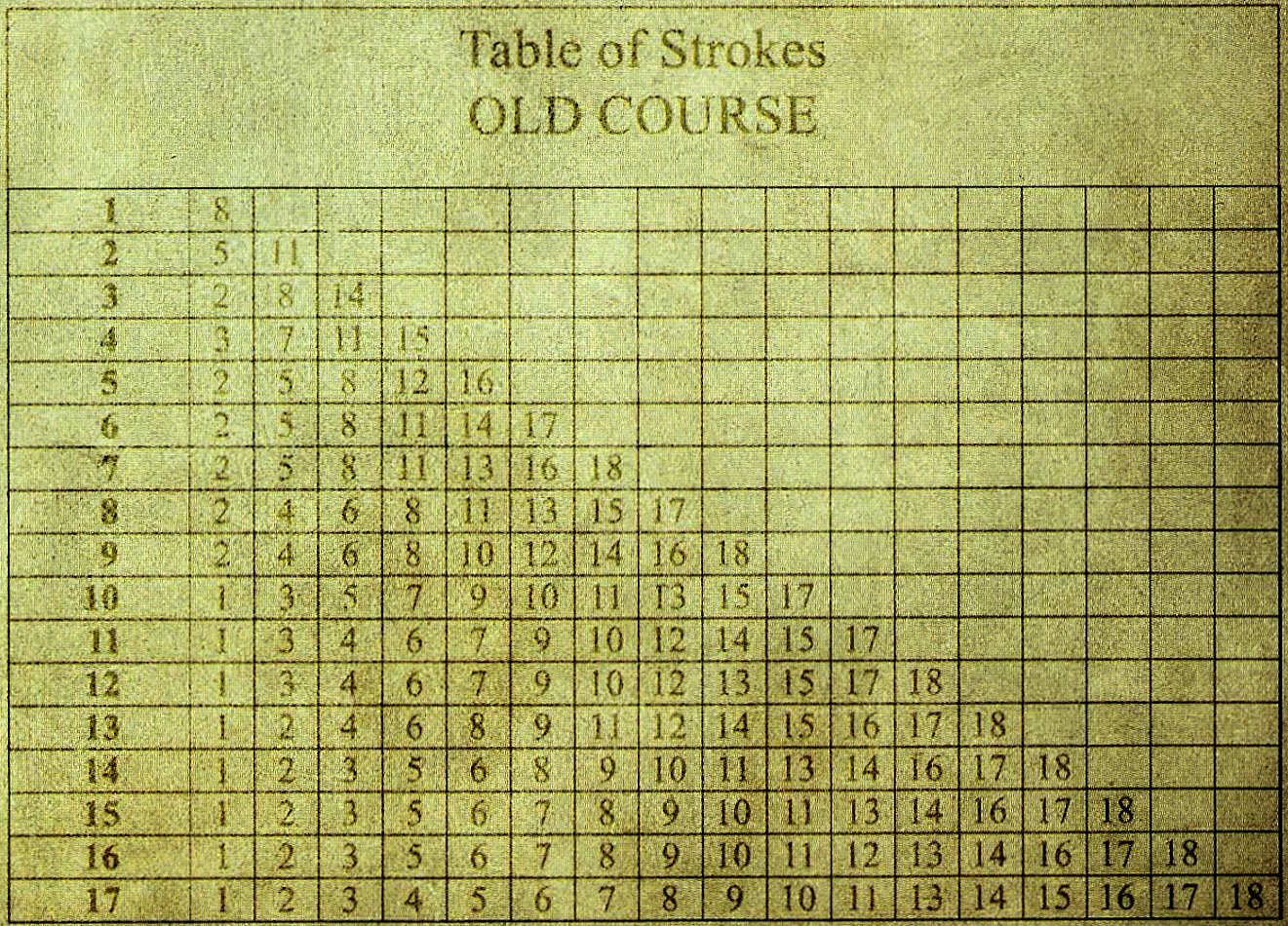 The Visitor Clubhouse bill, in 2017, came in a Sleeve that we could not figure out what was the purpose of the "Table of Strokes" information printed on the Sleeve. Any clues/opinions? If you know... Thank you, in advance, for getting back to me.